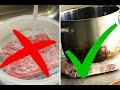تجميد اللحوم في الفريزر ليس بالمشكلة، وإنما العمل على إذابة الثلوج عن اللحم قبل طهيها لربما يمثل مشكلة لدى الكثير من ربات البيوت، فهي تعمل إما على إخراج اللحم من الفريزر في الليلة الماضية حتى يفقد تجميده، وإما إخراجه ووضع الماء عليه وهذا خاطئ، او إذا نسيت إخراجه في ليلة ماضية لربما لن تستطع تناول الغداء لهذا اليوم حيث أنه سيأخذ الكثير من الوقت حتى يفقد تجميده، وكذلك من الخطر والخطأ وضع الماء الساخن عليه، فإن ذلك لربما يؤدي إلى خطورة كبيرة والتي تكمن في تكون البتكيريا داخل اللحم، بالإضافة إلى أن محاولة طهي اللحم وهو لا زال مجمدا ليس صحيحا.